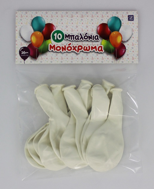 ΜΠΑΛΟΝΙΑ ΛΕΥΚΑ ΣΕ ΣΥΣΚΕΥΑΣΙΑ 10τεμ. ΔΙΑΜΕΤΡΟΥ 26εκ ποσότητα