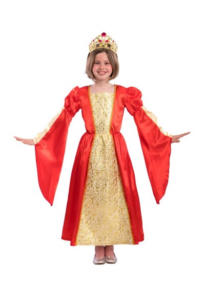 Κόκκινη στολή πριγκίπισσας. Φόρεμα σε κόκκινο ύφασμα και χρυσό ανάγλυφο καμβά. Το στέμμα δεν περιλαμβάνεται.