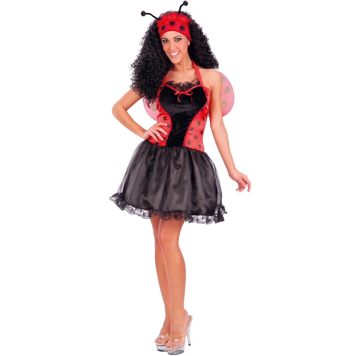 Φόρεμα Πασχαλίτας με δίχρωμα κοκκινόμαυρα φτερά και κεφαλόδεσμο με κεραίες.