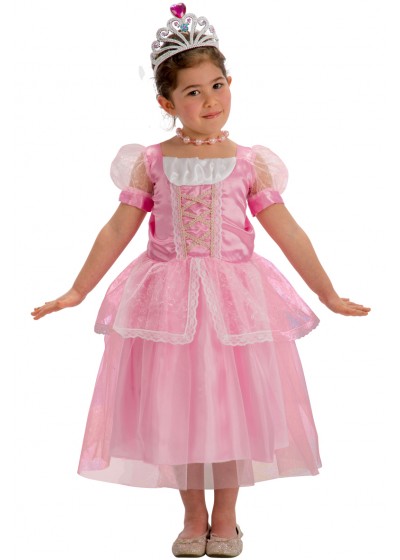 Ροζ κοστούμι πριγκίπισσας. Αποτελείται από φόρεμα σε ροζ ύφασμα και glittery δαντέλα.Το στέμμα δεν περιλαμβάνεται.